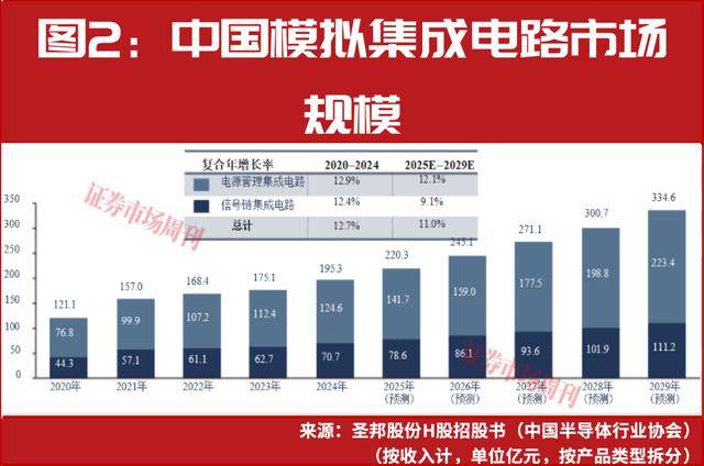 另据纳芯微H股招股书,依托新能源汽车的发展和自动驾驶技术的进步,汽车模拟芯片是成长最快、技术门槛最高的领域之一。2024年,智能新能源汽车模拟芯片应用的平均单车价值在1500元-2800元之间,预计到2029年,汽车产业电气化和智能化的深度融合将大幅推动模拟芯片的平均单车价值增长至2200元-4000元。2024年,模拟芯片在汽车应用领域的市场规模达到371亿元,预计到2029年,相应的市场规模将扩大至858亿元。