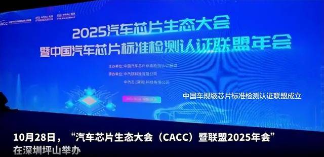 其次在国家层面,在2025年10月28日,2025汽车芯片生态大会(CACC)暨中国汽车芯片标准检测认证联盟年会在深圳坪山举办,标志着我国首个车规级芯片全项标准验证公共服务平台的启用。